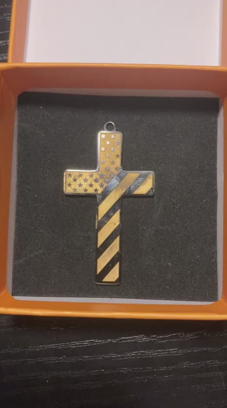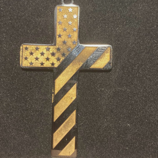 24K Gold plated American Flag Cross Car Hanging Ornament, Vehicle Rear View Mirror Hanging Pendant